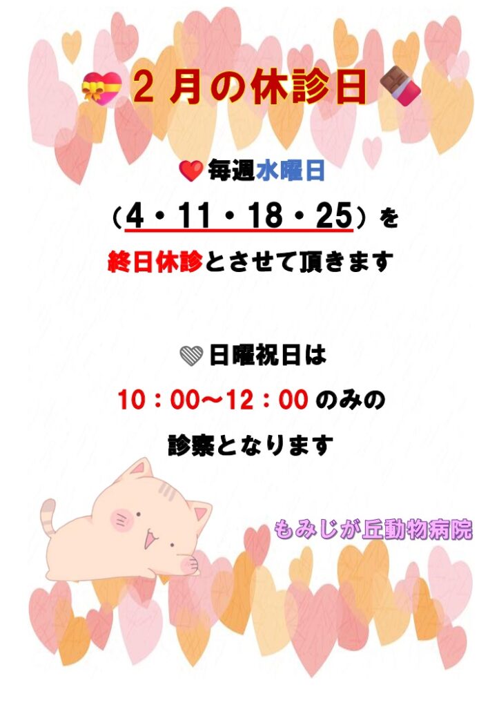 臨時休診は、お知らせ、または、カレンダーを確認してください。